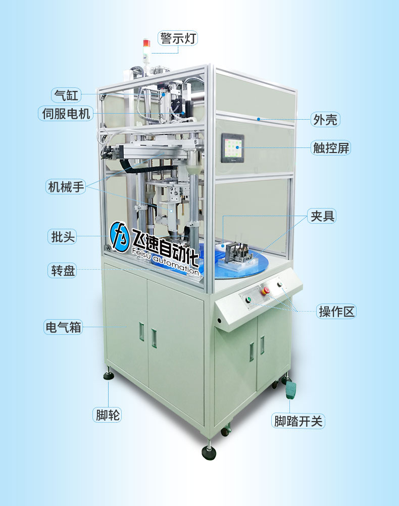 - 產品簡介: 膠件自動鎖螺絲機,該款采用多軸式,每秒可以同時鎖四個膠件,極大提高了生產效率