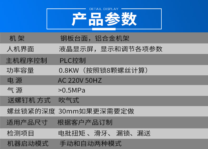 • 產(chǎn)品簡介: 該款設(shè)備是用來鎖付坐墊的,坐墊上有九顆螺絲,通過該款螺絲機,我們將扭力調(diào)整至一定程度,讓夾咀中的螺絲擰緊到合適位置,從而使該款坐墊達到牢固的效果。