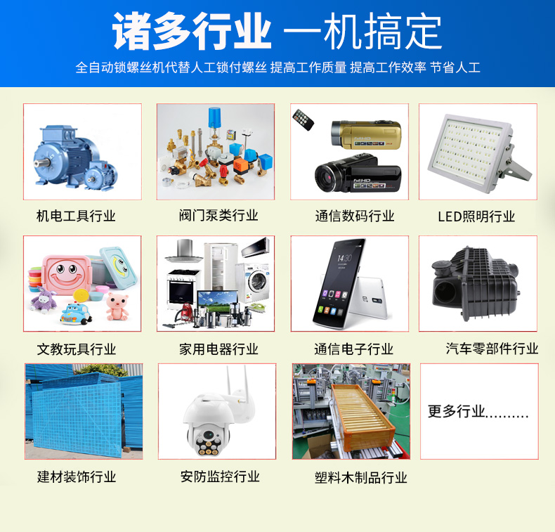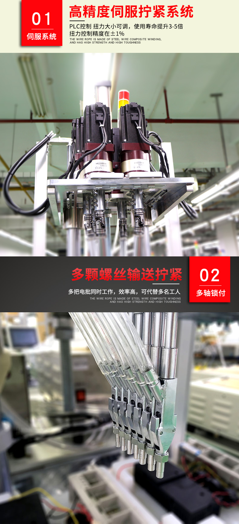 - 產品簡介: 該臺攝像頭自動擰螺絲機,是用來擰攝像頭上面和側面的螺絲。另外根據客戶要求,我們這邊同時搭配了機械臂,通過機械臂將產品轉移至流水線上,方便客戶節省時間,提高客戶生產產能。